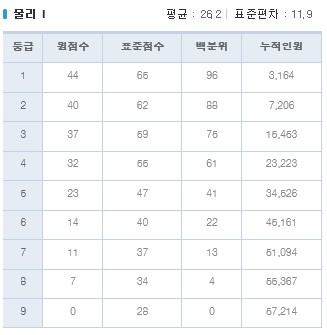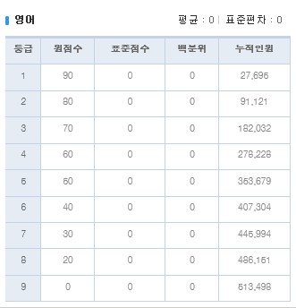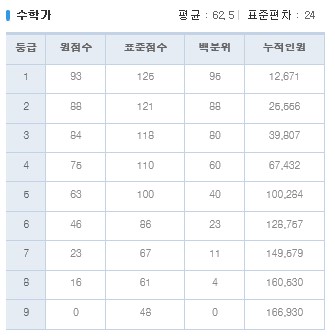 2017년 3월 고3 모의고사 등급컷