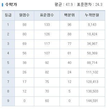 2020년 3월 고3 모의고사 등급컷